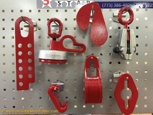 1 AUTO BODY Multi Hole Puller Pull Plate 1 MO Clamp 2450 Style Shock Strut Tower Puller Clamp Auto Body Frame Machine clamp 1 Double Claw Hook Chain Sorter Double Hook Auto Body Frame Machine tool 1 Chief style Frame machine Slotted Chain Plate 606548 1 Mo-Clamp style 1300 Sill Hook Tooth Round Hook Clamp Grip Pull Auto Body 1 Mo-Clamp style 0300 Jr Clamp Auto Body Frame Machine Repair Pulling Clamp 1 Auto Body Frame Repair tool clamp Handy Link 5 Ton Pull Link Chain Lock Please note that the color of this tool might be different from pictures depending on availability. Either RED, BLUE, TURQUOISE, YELLOW, ORANGE, GOLD, SILVER whichever is available will be shipped out. ☆☆☆☆☆BOARD AND HOOKS NOT INCLUDED BUT CAN BE PURCHASED☆☆☆☆☆